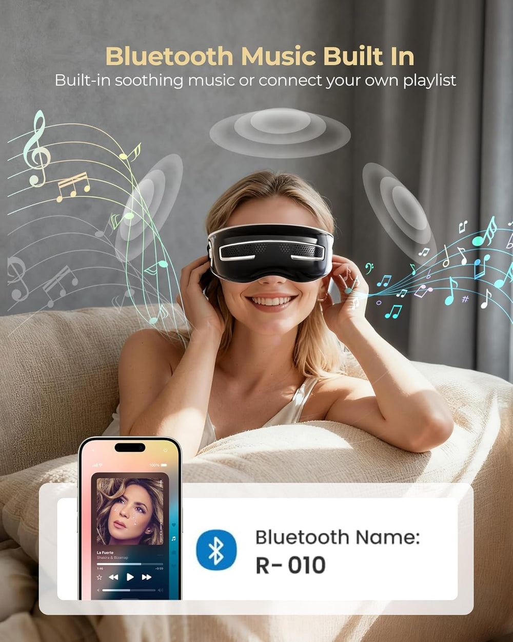 【Unwind and De-Stress】Imagine slipping on this eye massager after a long day—it instantly delivers a soothing warmth.Each soft silicone massage head simulates a skilled manual massage targeting eye acupoints. Through gentle oscillating pressure and rhythmic tapping, it helps melt away eye strain, release tension around your eyes, and ease overall stress. Your Skin around eyes feels refreshed and calm